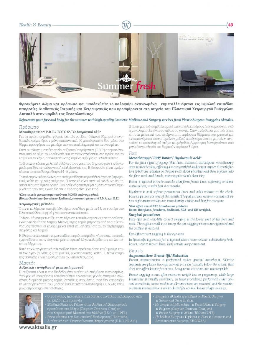 Welcome the summer with a rejuvenated face and a refreshed body with the high-quality Cosmetic Medicine and Surgery services provided by Plastic Surgeon Evangelos Aktsalis, right in the heart of Thessaloniki’s city centre.