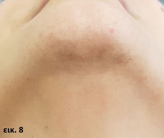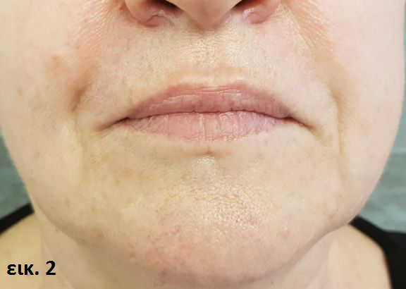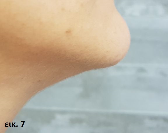 Υπάρχουν όμως και λιγότερο γνωστές χρήσεις του υλικού, όπως για παράδειγμα στο να λειάνει τις αύλακες άνωθεν (εικ. 3, 4) ή κάτωθεν του πηγουνιού (εικ. 5, 6, 7, 8), όταν αυτές είναι έντονες και συνεπώς ενοχλητικές.