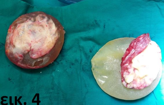 Η ασθενής υπεβλήθη σε αφαίρεση του παλιού ενθέματος, καψουλεκτομή, διαμόρφωση νέας θήκης και αντικατάσταση του ενθέματoς, ενώ για τον ετερόπλευρο μαστό δεν επιθυμούσε κάποια επέμβαση συμμετροποίησης.