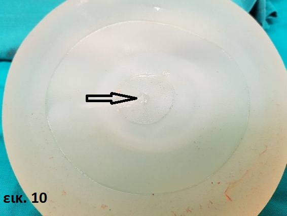 Εικόνα 7: προεγχειρητικό προφίλ, εικόνα 8: αντίστοιχη μετεγχειρητική, εικόνα 10: σημείο διαφυγής σιλικόνης παλιού ενθέματος
