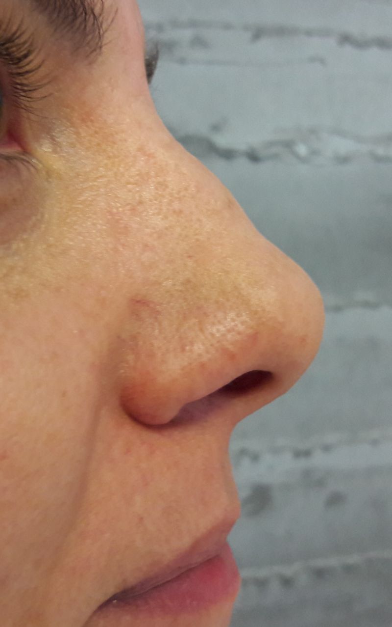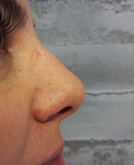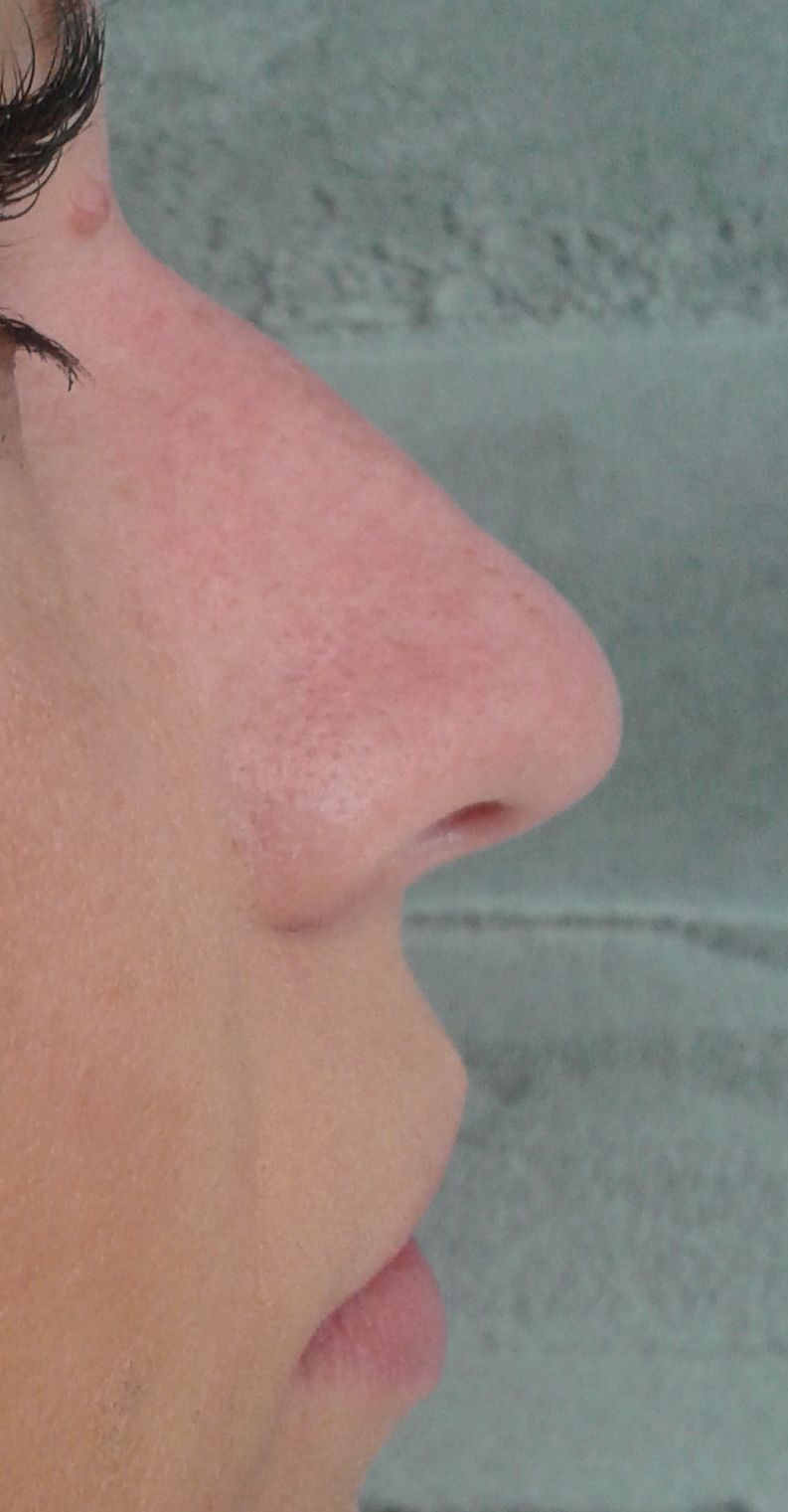 Υπάρχουν, όμως, και μύτες οι οποίες δεν χρήζουν μείζωνες παρεμβάσεις: ένας μικρός ήβος (”καμπούρα”), μια μικρή πτώση της κορυφής (βλ. φώτο) ή μια ήπια ασυμμετρία μπορούν να αντιμετωπισθούν συντηρητικά, αποφεύγοντας, έτσι, το χειρουργείο και ό,τι αυτό συνεπάγεται. Σ’ Αυτές τις περιπτώσεις έχει ένδειξη να διενεργείται η μη- επεμβατική ρινοπλαστική.